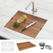 - Workstation sink: Ledges on the front and back provide a track for the integrated cutting board Cutting Board covers the entire sink, converting your sink into a countertop when you need 16 Gauge Premium T-304 Grade Stainless Steel (18/10 Chromium/Nickel) will never rust or stain