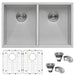 30" Undermount 50/50 Double Bowl Zero Radius 16 Gauge SS Kitchen Sink