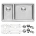 - LARGE DOUBLE BOWL SINK: 31-1/2 inches wide x 17-3/4 inches front-to-back provides ample space for your kitchen needs. | 16 GAUGE STAINLESS STEEL: Premium T-304 Grade (18/10 Chromium/Nickel) ensures resistance to rust and staining. | COMMERCIAL-GRADE BRUSHED FINISH: Easy to clean, long-lasting, and hides scratches while complementing kitchen appliances.