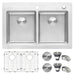 - LARGE DOUBLE BOWL SINK: 33 inches wide x 22 inches front-to-back provides ample space for all your kitchen needs. | 16 GAUGE STAINLESS STEEL: Premium T-304 Grade (18/10 Chromium/Nickel) ensures durability and resistance to rust and staining. | COMMERCIAL-GRADE BRUSHED FINISH: Easy to clean and durable ‐ hides scratches and complements your kitchen appliances.