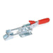 GN 851.3 horizontal latch type toggle clamps are compact in design and can be used to ensure high holding capacities. The circular movement of the handle is transformed into linear action of the latch. In the clamped position the U-bolt latch with clamping arm is parallel to the plane of the operating handle. When the toggle clamp is clamped, a safety hook positively locks onto the body. This prevents inadvertent or vibration-induced release from the clamping position. Unlocking of the safety hook is achieved by one-hand operation.
