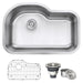 - Included in box: sink, basket strainer, bottom rinse grid, cutout template, mounting brackets.